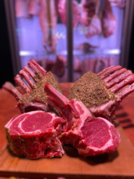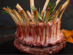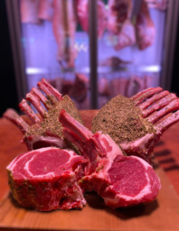 Lamsrack gemarineerd met kruidenmantel.
